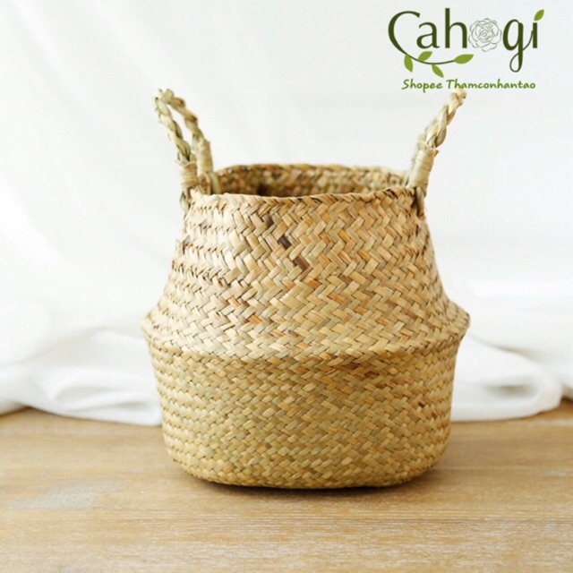 Giỏ Cói Trồng Cây Vintage (Có Quai Xách) free ship