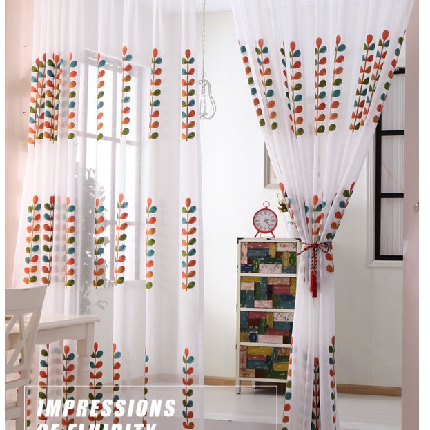 rèm cửa sổ Vải Tuyn Họa Tiết Dây Leo Trang Trí Nội Thất